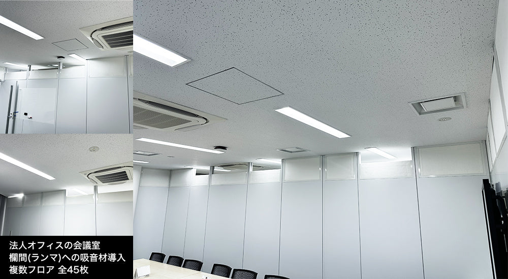 法人様よりオフィスの会議室にて、欄間(ランマ)オープン部分に対する防音対策のご相談。取り外しが可能な吸音パネルをオーダーいただきました。