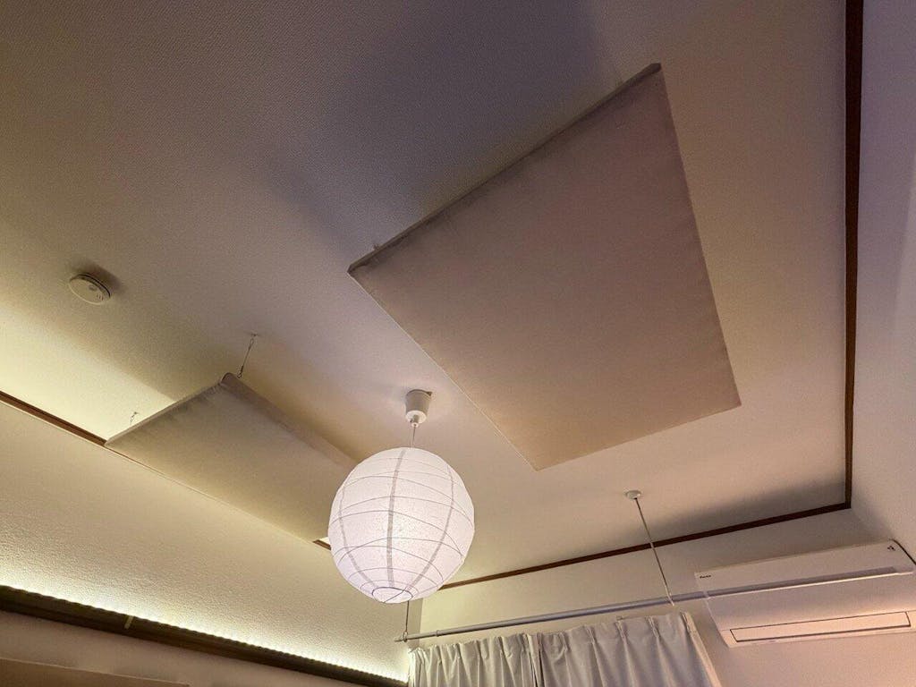 ・壁に立掛けて、ピアノの音、オーディオの音、話し声などの室内の反響を抑えたり、外部へもれる音を減衰する。