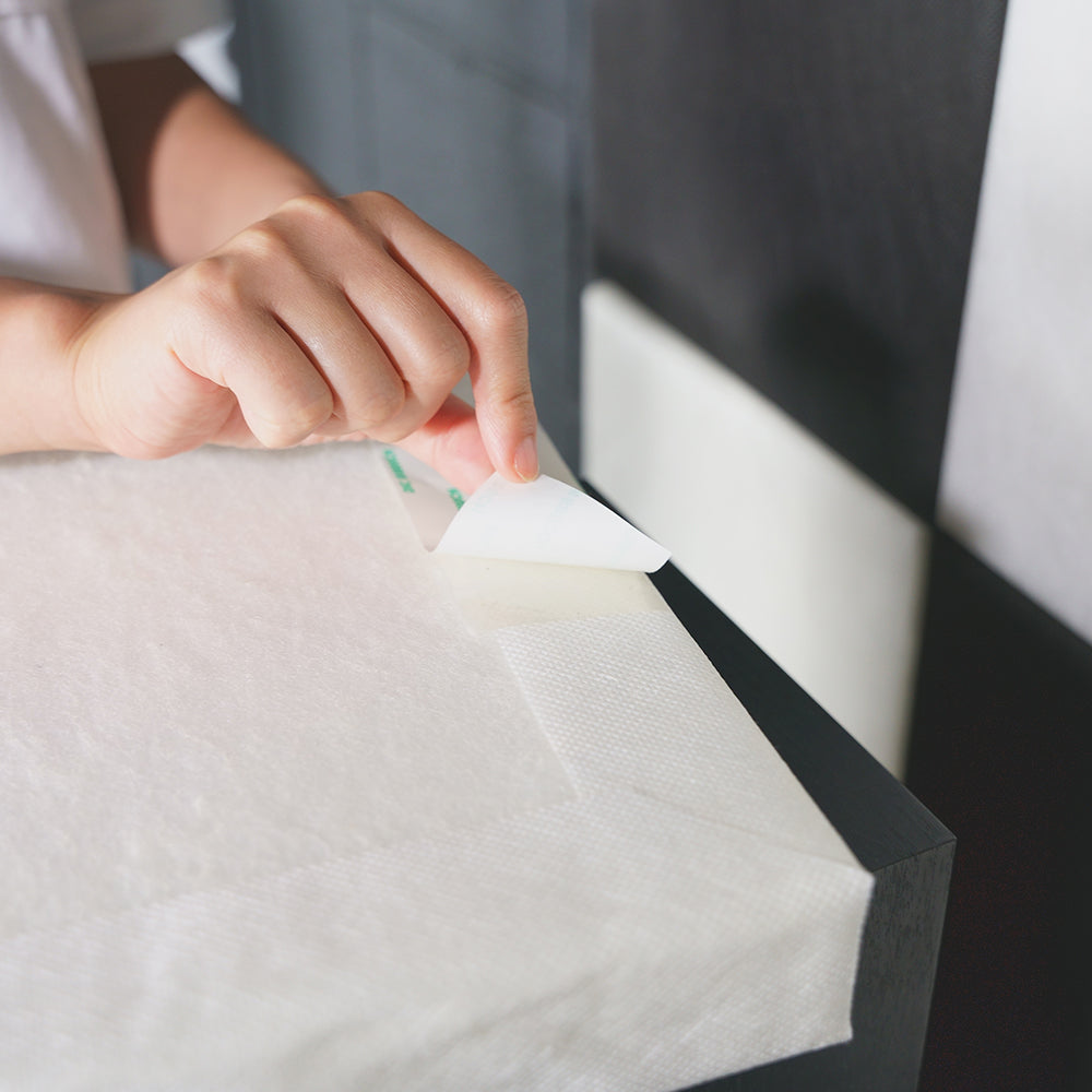 壁に貼り付けるパネルタイプのホワイトキューオン。安心の日本製です。不織布巻きのため、ホコリが付きにくい設計です。