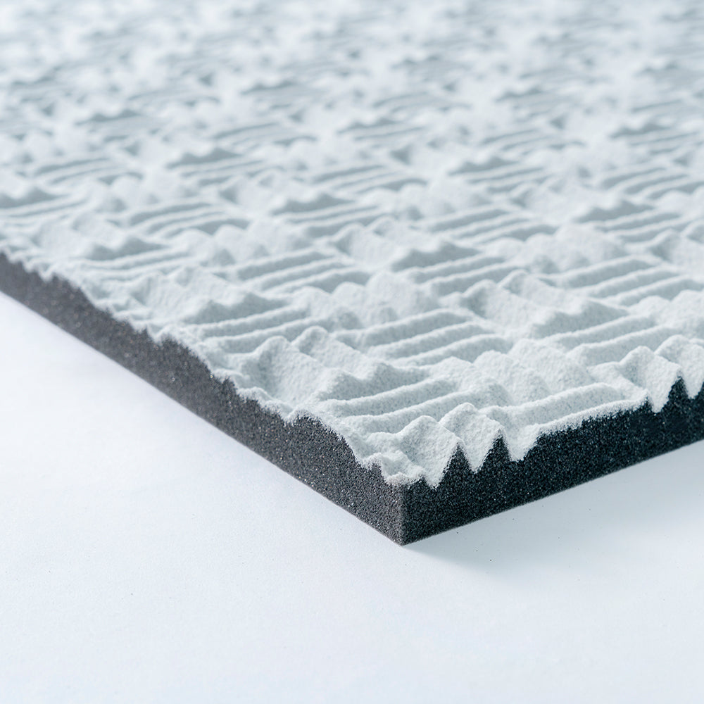 スムーズに不要な音を取り除く音質改善のための吸音材。ピアノ演奏はもちろん、オーディオの音質改善に。特殊ウレタンの表面をくさび状に特殊成形し、表面積を約2.5倍へ。厚み24mmの柔らかいタイプです。2カラーをご用意しています。より音を柔らかくしたい方は、厚み40mmタイプがおすすめです。
