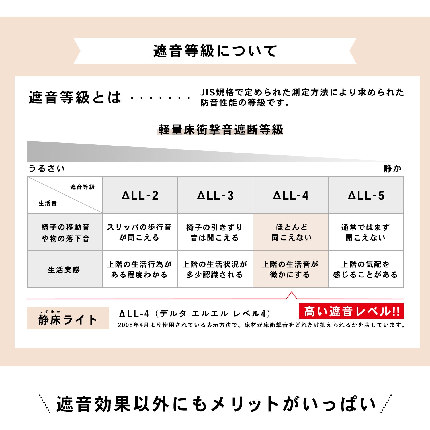 下地に「遮音材シャットオンシート」を敷くことで、防音効果が更に高まります。足音や振動音に対してもより効果的です。
